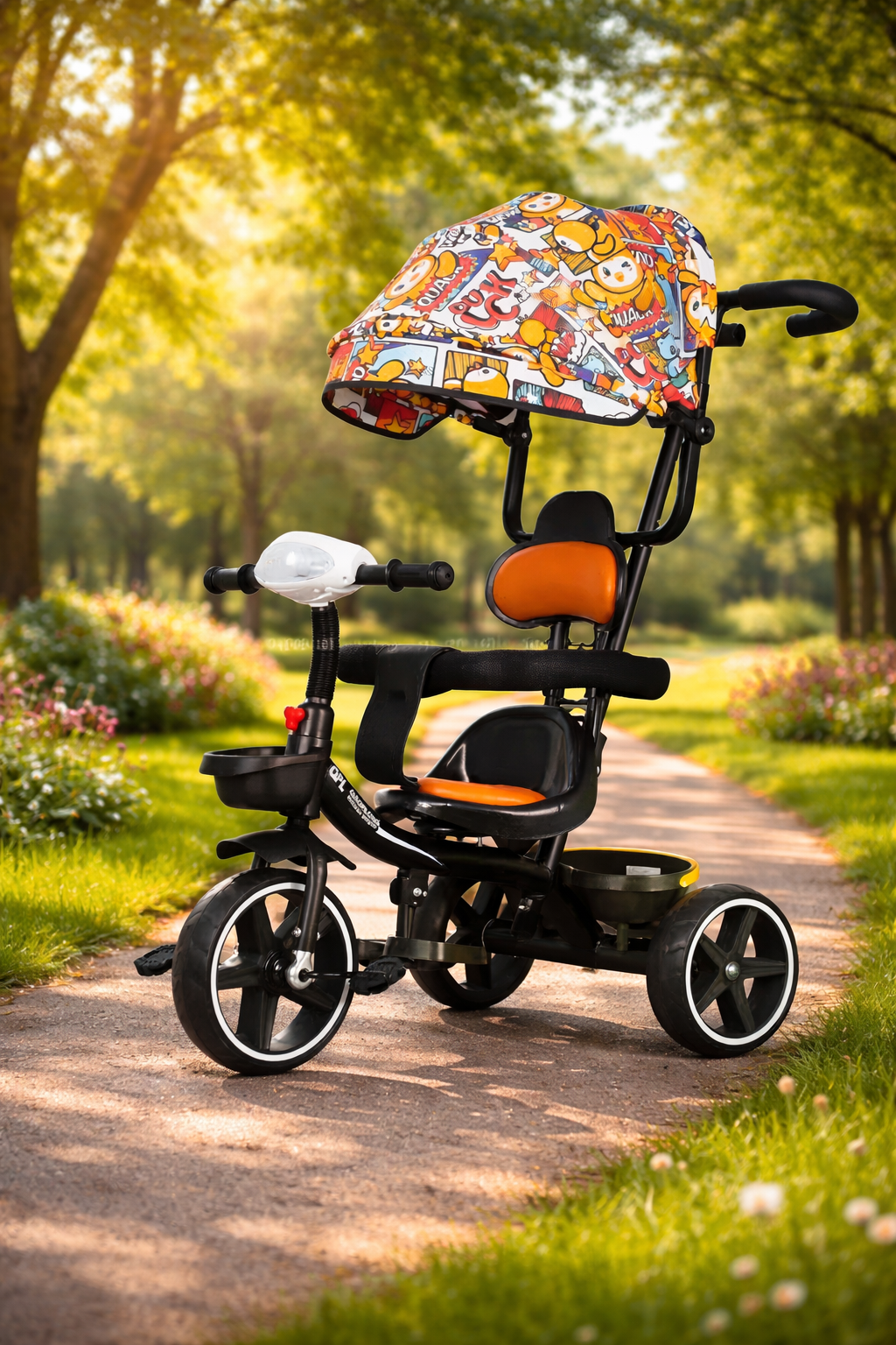 Kids Tricycle With Sun Shade & Push Handle